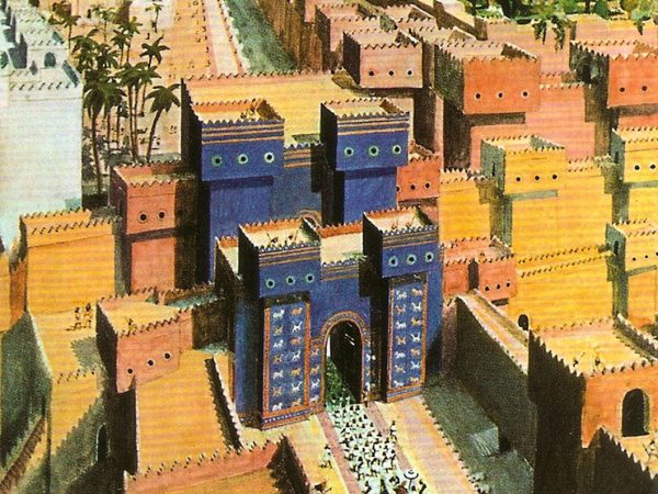 Unter der Herrschaft von Nebukadnezar II. entsteht die Prozes­sionsstrasse von Babylon. Die gebrannten Ziegel der Fundation werden mit Asphalt vermörtelt. Die oben liegenden Steinplatten ruhen in einem Asphaltmörtelbett. Die Bauweise zählt zu den eigentlichen Vorläufern der modernen Asphaltstrassen.