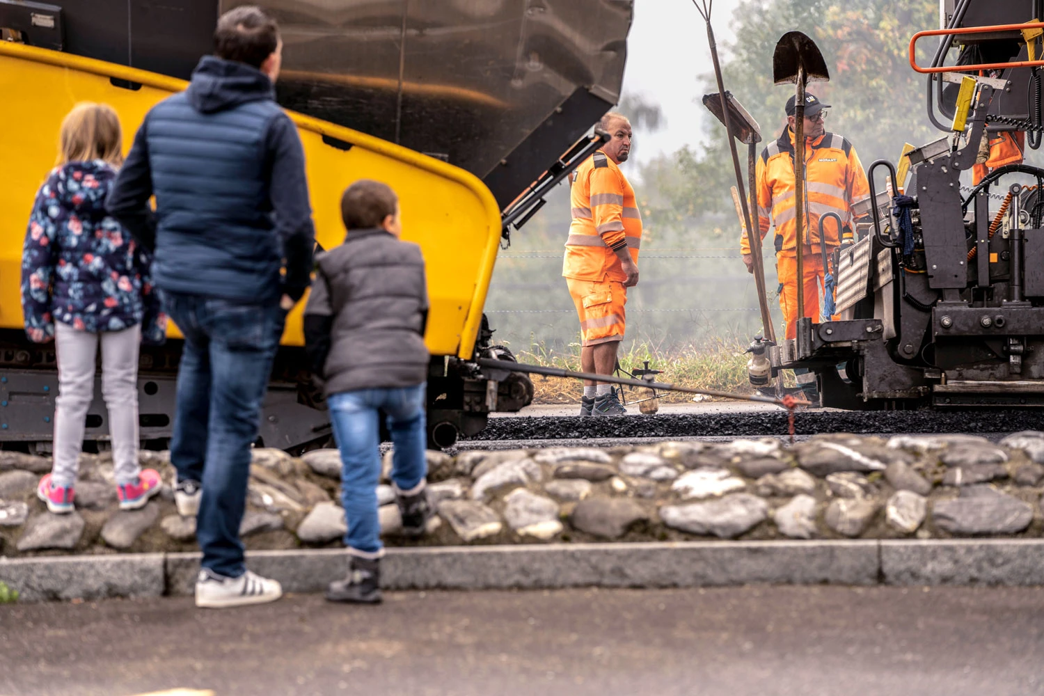 «Ich war neugierig und wollte vor Ort selbst schauen, wie das Projekt läuft. Die schiere Menge an Asphalt, die wir hier an einem einzigen Tag verbauen, ist aussergewöhnlich. Und es ist halt immer wieder spektakulär, wenn unsere Männer und Maschinen am Werk sind. Das finden offenbar auch die Anwohnerinnen und Anwohner. Es freut mich, dass so viele von ihnen hier sind und zuschauen.»