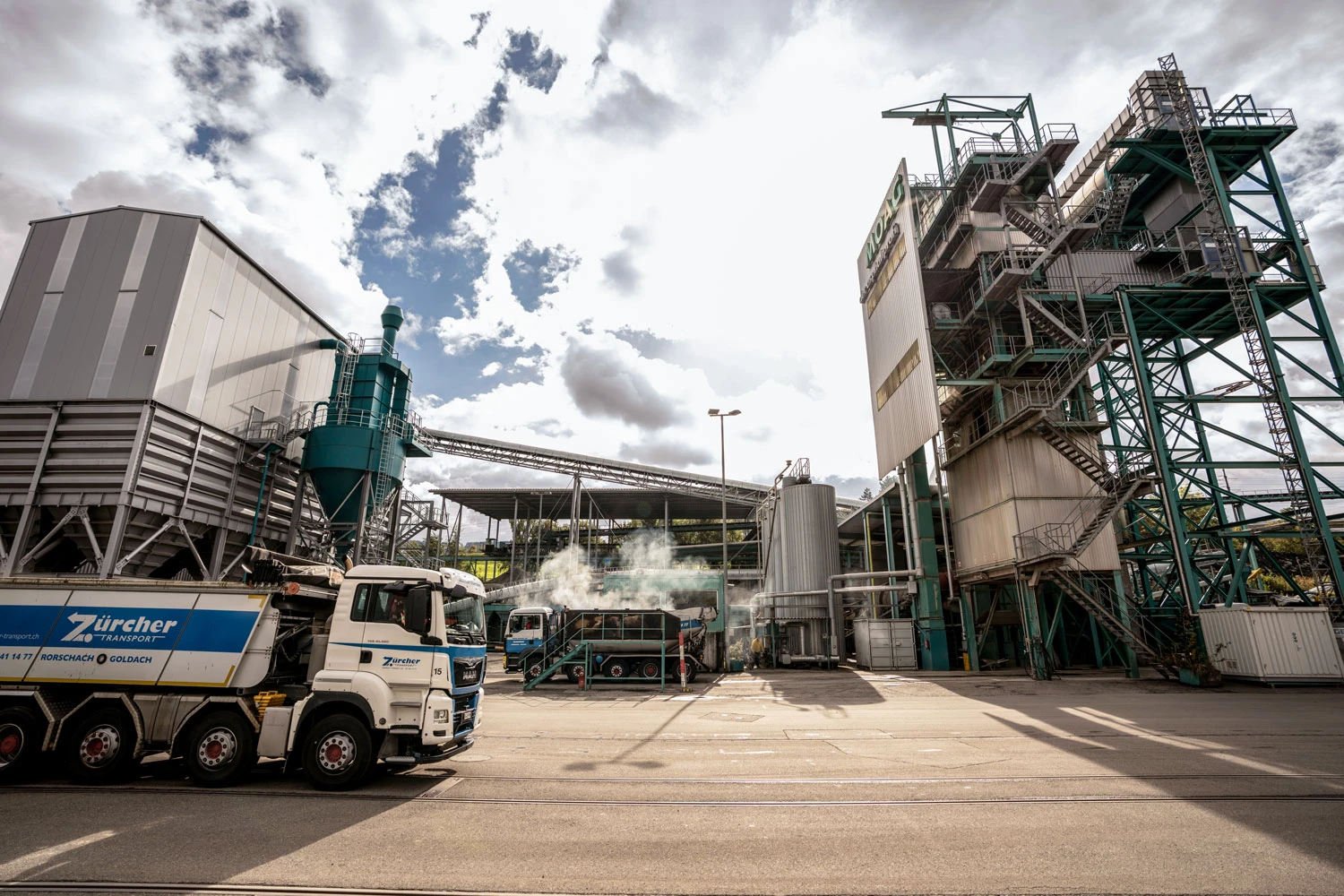 Zwei-Meter-Fräsen fahren auf. Mit ihnen beginnen die Arbeiter, den alten Belag abzutragen. Wie mit einer riesigen Raffel hobeln sie den diesen ab. Acht Zentimeter sollen es bis zum Abend sein. «Wir ersetzen nur die obersten Schichten. Das ist ein gängiges Verfahren, das den Vorteil hat, dass wir weniger Material verbrauchen», erklärt der Ingenieur von Wälli. Das Ausbruchmaterial wird direkt auf Lastwagen verladen, die es zum MOAG-Werk in Mörschwil transportieren, wo es später als Recyclingmaterial wiederverwendet werden wird.